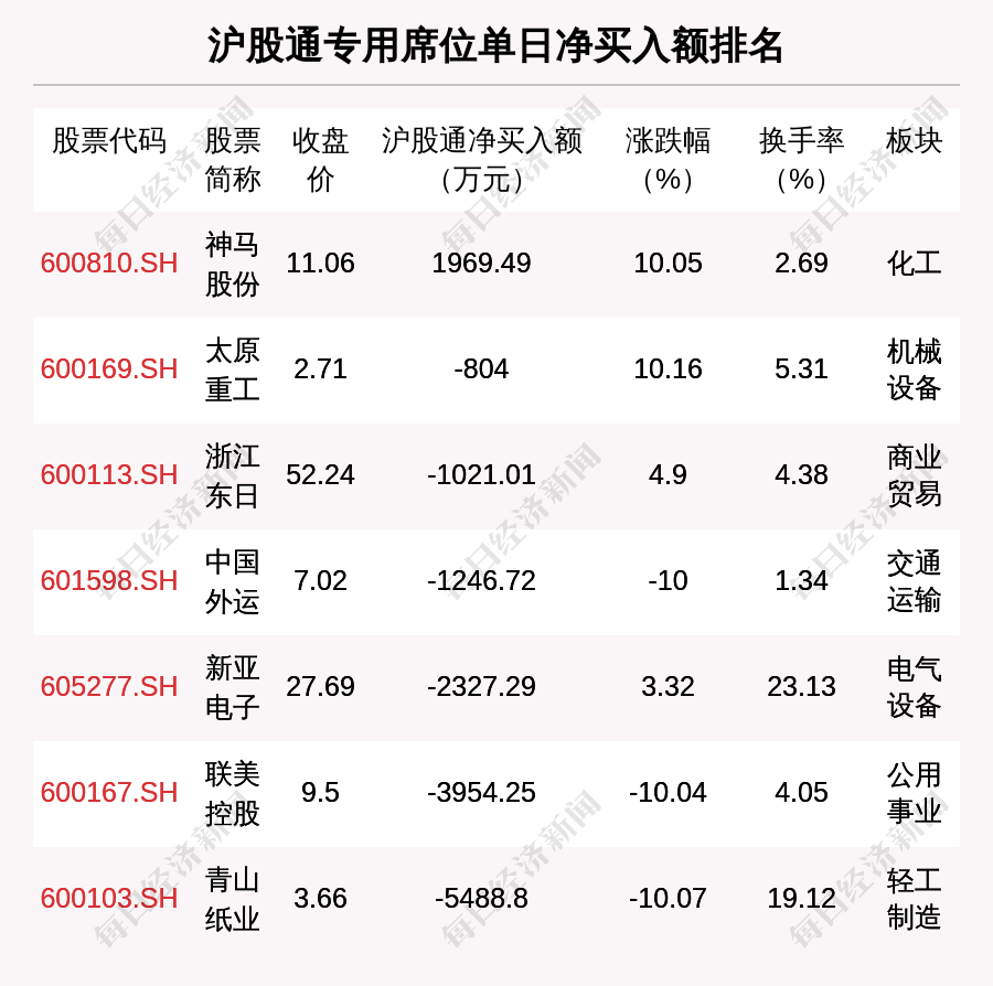 在龍虎榜中,涉及滬股通專用席位的個(gè)股有7只,神馬股份的滬股通專用席位凈買入額最大,凈買入1969.49萬(wàn)元。