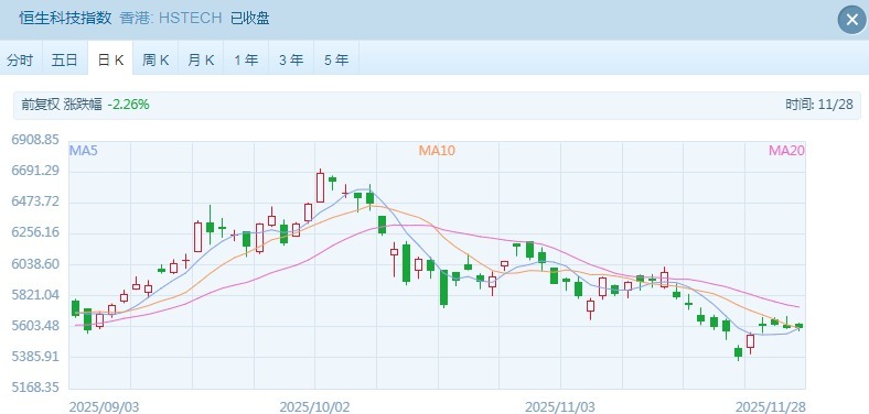 今日(11月28日)恒生指數(shù)微跌結(jié)束了此前的“四連漲”,同時(shí)港股11月也平穩(wěn)收官。本月恒生指數(shù)累計(jì)下跌0.18%,恒生科技指數(shù)累計(jì)下跌達(dá)5.23%。