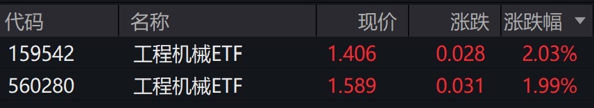 工程機械概念股走強,徐工機械漲超3%,濰柴動力、恒立液壓、中聯(lián)重科漲超2%。